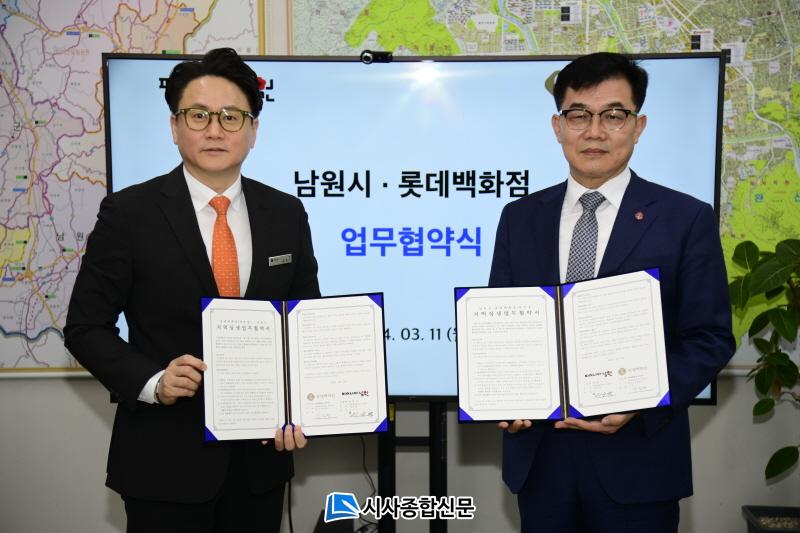 [½Ã»çÁ¾ÇսŹ® = ±è¿¬Èñ ±âÀÚ] ³²¿ø½Ã¿Í ·Ôµ¥¹éÈÁ¡ ÀüÁÖÁ¡Àº 3¿ù 11ÀÏ ¹éÈÁ¡¿¡¼ À̼øÅà ºÎ½ÃÀå°ú °Á¤±¸ ¹éÈÁ¡Àå µî °ü°èÀÚµéÀÌ Âü¼®ÇÑ °¡¿îµ¥ ¡®³²¿ø½Ã-·Ô´ë¹éÈÁ¡(ÀüÁÖÁ¡) Áö¿ª»ó»ýÇù·Â°ü°è ±¸ÃàÀ» À§ÇÑ ¾÷¹«Çù¾àÀ» ü°áÇß´Ù.