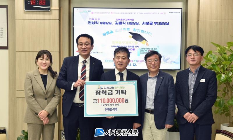 ±èÁ¦»ç¶ûÀåÇÐÀç´Ü Á¤¼ºÁÖ ÀÌ»çÀåÀº ¡°¿ì¸® Áö¿ªÀÇ ±³À° ¹ßÀü°ú ÀÎÀç ¾ç¼ºÀ» À§ÇØ ÇØ¸¶´Ù ÀåÇбâ±Ý Á¶¼º¿¡ Âü¿©ÇØ ÁØ ÀüºÏÀºÇà¿¡ °¨»çÇÏ´Ù¡±¸ç, ¡°±âŹÇÑ ÀåÇбÝÀ» ¹ÙÅÁÀ¸·Î ±èÁ¦ÀÇ ¹àÀº ¹Ì·¡¸¦ À̲ø¾î °¥ Çлýµé¿¡°Ô ´õ ¸¹Àº Áö¿øÀ» ¾Æ³¢Áö ¾ÊÀ» °Í¡±À̶ó°í ÀüÇß´Ù.