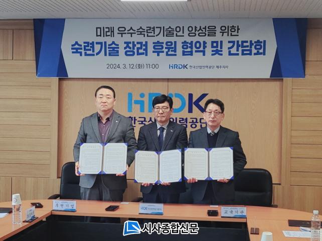 À̳¯ Çù¾à½Ä¿¡´Â ±¤´öÀü·Â(ÁÖ) °íÀ±¼® ´ëÇ¥¿Í Çѱ¹»ê¾÷Àη°ø´Ü Á¦ÁÖÁö»ç(Áö»çÀå ¾ç´ëÇü) µî ±â´É°æ±â´ëȸ ÃâÀü Çб³ ¹× °ü°èÀÚ°¡ Âü¿©ÇÏ¿´À¸¸ç ¼÷·Ã ±â¼ú Àå·Á¸¦ À§ÇÑ ¾÷¹«Çù¾àÀ» ü°áÇϰí ÈÄ¿ø±ÝÀ» Àü´Þ¹Þ¾Ò´Ù.