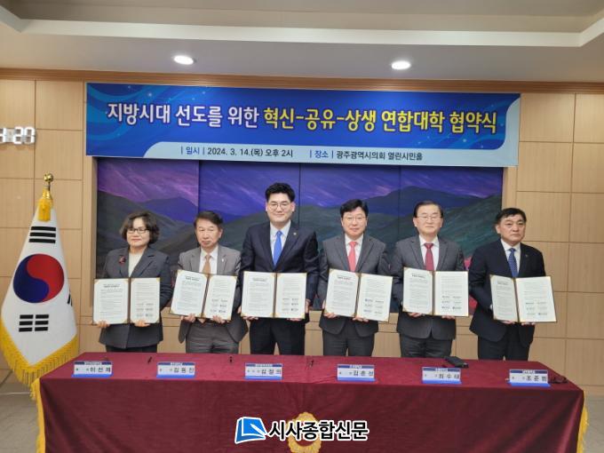 Á¶¼±´ëÇб³(ÃÑÀå ±èÃἺ)´Â 14ÀÏ ¿ÀÈÄ 2½Ã ±¤ÁÖ±¤¿ª½ÃÀÇȸ 4Ãþ ¿¸°½Ã¹ÎȦ¿¡¼ ¡®5°³´ëÇÐ ¾÷¹«Çù¾à½Ä¡¯À» ÁøÇàÇß´Ù. ÀÌ ÀÚ¸®¿¡´Â ±¤ÁÖ±¤¿ª½Ã °í±¤¿Ï ÇàÁ¤ºÎ½ÃÀå, ±¤ÁÖ±¤¿ª½ÃÀÇȸ ½ÉöÀÇ ºÎÀÇÀå, Àӹ̶õ ÇàÁ¤Â÷ÁöÀ§¿øÀåÀ» ºñ·ÔÇØ Á¶¼±´ë ±èÃἺ ÃÑÀå, ±¤ÁÖ´ë ±è°©¿ë ºÎÃÑÀå, ±¤ÁÖ¿©´ë À̼±Àç ÃÑÀå, ³²ºÎ´ë Á¶Áعü ÃÑÀå, ¼Û¿ø´ë ÃÖ¼öÅ ÃÑÀå µîÀÌ Âü¼®Çß´Ù.