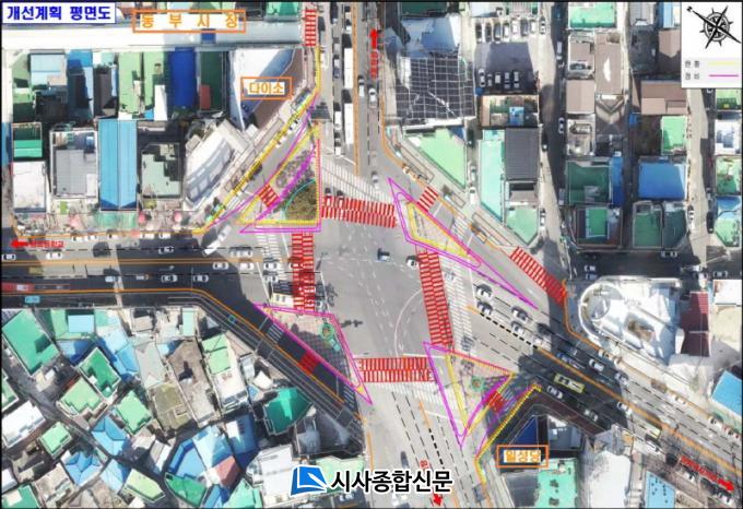 ¿ÃÇØ 1¿ù ¿Ï·áµÈ Çϴ絿 À̹ٵ¼°¨ÀÚÅÁ»ç°Å¸®´Â ½ÃÀμº µîÀÌ °³¼±µÈ ½ÅÈ£µîÀ¸·Î ±³Ã¼µÇ¾ú°í, Á»´õ ¾ÈÀüÇÏ°Ô º¸ÇàÀÚ°¡ Ⱦ´ÜÇÒ ¼ö ÀÖµµ·Ï 1°³ÀÇ È¾´Üº¸µµ À§Ä¡ µîÀ» Á¶Á¤Çß´Ù. ÇöÀç °ø»ç°¡ ÁøÇà ÁßÀÎ µ¿ºÎ±¤Àå»ç°Å¸®´Â ½ÃÀå°ú Çб³°¡ ÀÎÁ¢ÇØ ÀÖ¾î À¯µ¿ Àα¸¿Í ±³Åë·®ÀÌ ¸¹Àº ±³Â÷·Î·Î, ¿¬ Æò±Õ 10°Ç ÀÌ»óÀÇ ±³Åë»ç°í°¡ ¹ß»ýµÇ´Â °÷ÀÌ´Ù. ÀÌ¿¡ ½Ã´Â Ⱦ´Üº¸µµ¸¦ ÀÌ¿ëÇÏ´Â º¸ÇàÀÚÀÇ ¾ÈÀü È®º¸¿Í ±³Â÷·Î Åë°ú ±³Åë·®À» Á»´õ ´Ã¸®±â À§ÇØ ±³Â÷·Î ³» 11°³ÀÇ È¾´Üº¸µµ À§Ä¡¸¦ Àü¸é Á¶Á¤ÇÏ°í ±³Åë¼¶°ú ½ÅÈ£µîµµ ÇÔ²² Á¤ºñÇÑ´Ù.