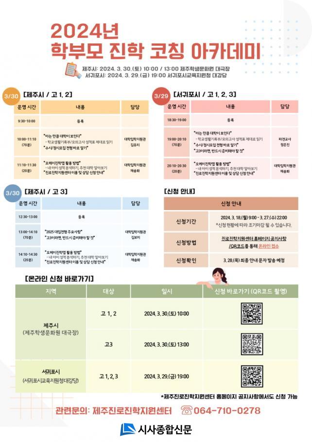 ¡®2024³â Çкθð ÁøÇÐ ÄÚĪ ¾ÆÄ«µ¥¹Ì¡¯´Â ±âº»ÀûÀÎ ´ëÀÔÁ¦µµ¿Í ÀüÇü¿¡ ´ëÇÑ ¾È³»¸¦ ºñ·ÔÇÏ¿© ´ëÇÐ ÁøÇÐÀ» ÁغñÇÏ´Â Çлý°ú ÇÐºÎ¸ð¿¡°Ô ÇÊ¿äÇÑ ½ÇÁúÀûÀÎ Á¤º¸¸¦ Á¦°øÇϱâ À§ÇÑ ´ëÀÔ ¼³¸íȸÀÌ´Ù. µµ³» Áö¿ªº° °í±³»ý°ú ÇкθðÀÇ Âü¿© ±âȸ È®´ë¸¦ À§ÇØ Á¦ÁÖ½Ã¿Í ¼±ÍÆ÷½Ã¿¡¼ °¢°¢ °³ÃÖÇϰí, Á¦Áֽô ´ë»ó ÇгâÀ» ±¸ºÐÇÏ¿© ¿î¿µÇÑ´Ù.