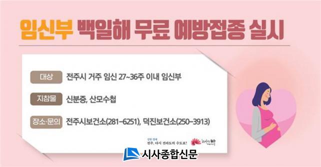 ÀüÁֽú¸°Ç¼Ò(¼ÒÀå ±è½Å¼±)´Â ÀüÁֽÿ¡ ÁÖ¼Ò¸¦ µÐ ÀӽŠ27~36ÁÖ À̳» Àӽźθ¦ ´ë»óÀ¸·Î ¹éÀÏÇØ ¹«·á ¿¹¹æÁ¢Á¾»ç¾÷À» ½ÃÇàÇÑ´Ù.º¸°Ç¼Ò¿¡ µû¸£¸é ¡®¹éÀÏÇØ¡¯´Â ¹ßÀÛ¼º ±âħ(Wooping cough)À» Ư¡À¸·Î Çϴ ȣÈí±â °¨¿°ÁúȯÀ¸·Î, ¹éÀÏÇØ µ¶¼Ò µî°ú °°Àº ´Ù¾çÇÑ È°¼º¹°ÁúÀ» »ý¼ºÇØ ±âµµ ³» ¿°ÁõÀ» À¯¹ßÇÑ´Ù.