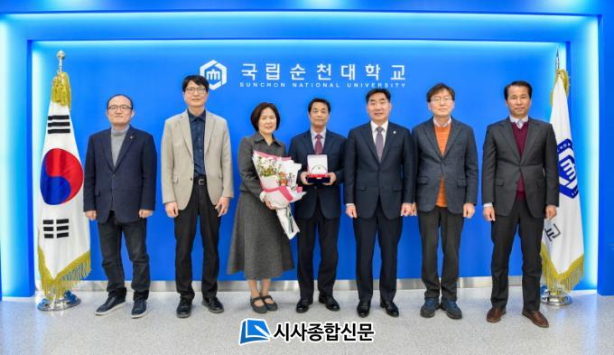 | ¼øÃµ´ëÇб³, (Àç)¼øÃµ´ëÇб³¹ßÀüÁö¿øÀç´Ü ¼Á¤Çö À̻翡°Ô °¨»çÆÐ Àü´Þ(À̺´¿î ÃÑÀå ¹× ´ëÇÐ ÁÖ¿ä º¸Á÷ÀÚ¿Í ¼Á¤Çö ÀÌ»ç ±â³äÃÔ¿µ) |