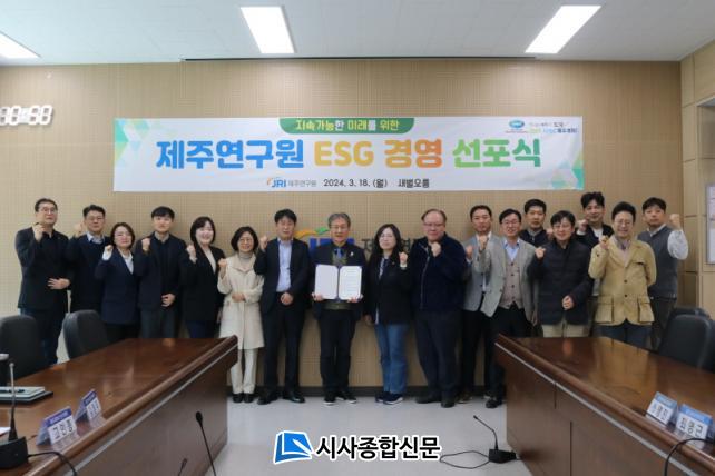 Á¦ÁÖ¿¬±¸¿øÀº ¼±Æ÷½ÄÀ» ÅëÇØ Á¦ÁÖÀÇ Áö¼Ó°¡´ÉÇÑ ¹ßÀüÀ» À§ÇÑ Á¤Ã¥¿¬±¸ °úÁ¤¿¡¼ ȯ°æ(E), »çȸ(S), Áö¹è±¸Á¶(G)¸¦ °³¼±Çϱâ À§ÇÑ ESG °æ¿µÀ» Àû±Ø ½ÇõÇÑ´Ù°í °áÀÇÇß´Ù.