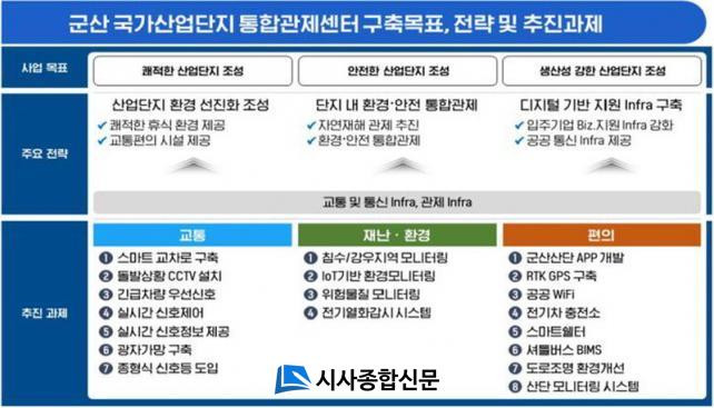 ±º»ê±¹°¡»ê¾÷´ÜÁö ÅëÇÕ°üÁ¦¼¾ÅÍ »ç¾÷Àº ±º»ê½Ã ±¹°¡»ê¾÷´ÜÁö Ư¼º¿¡ ¸Â´Â AI±â¹Ý µðÁöÅÐ ´ºµô, Àúź¼Ò ģȯ°æ ±×¸° ´ºµô, ±Ù·ÎÀÚ Ä£ÈÇü ÈÞ¸Õ´ºµôÀÇ ´ÜÀ§ ½Ã½ºÅÛÀ» ±¸ÃàÇÏ¿© ÀÔÁÖ±â¾÷°ú ±Ù·ÎÀÚ°¡ ¾ÈÀüÇÏ°í Æí¾ÈÇÏ°Ô Áö¼Ó ¼ºÀå °¡´ÉÇÑ ±â¹ÝÀ» ¸¶·ÃÇϱâ À§ÇÑ »ç¾÷ÀÌ´Ù. À̸¦ À§ÇØ ±º»ê½Ã´Â 2023³â 7¿ù ½Ç½Ã¼³°è¸¦ ÅëÇÏ¿© ±³Åë ºÐ¾ß 7°³ °úÁ¦, Àç³È¯°æ ºÐ¾ß 4°³ °úÁ¦, »ýȰÆíÀÇ ºÐ¾ß 8°³¸¦ ¼±Á¤Çϰí 11¿ùºÎÅÍ »ç¾÷À» ÃßÁøÇϰí ÀÖ´Ù