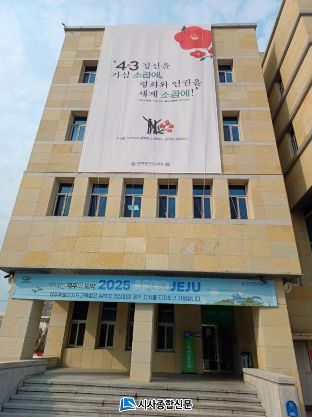 Á¦ÁÖµµ±³À°Ã»Àº 76ÁÖ³â 4¡¤3À» Ãß³äÇÏ´Â ´ëÇü Çö¼ö¸·À» º»°ü °Ç¹°¿¡ °Ô½Ã, Ãß³ä ºÐÀ§±â¸¦ È®»êÇϰí ÀÖ´Ù. Ãß³ä ¹®±¸´Â ¡° 4¡¤3ÀÇ Á¤½ÅÀ» °¡½É ¼Ò°ö¿¡, ÆòÈ¿Í ÀαÇÀ» ¼¼°è ¼Ò°ö¿¡!¡±·Î Á¦Á־ ³Ö¾î 4¡¤3ÀÇ Á¤½ÅÀÌ Àü±¹ ¹× ¼¼°è·Î È®»êµÇ±æ ±â¿øÇÏ´Â Àǹ̸¦ ´ã¾Ò´Ù.