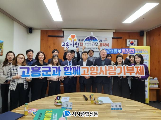 [½Ã»çÁ¾ÇսŹ® = ¿À½ÂÅà ±âÀÚ] °íÈﱺ µ¿°¸é(¸éÀå ½Å´ë½Ä)°ú ±¤ÁÖ ±¤»ê±¸ ¼ÛÁ¤1µ¿(µ¿Àå À¯ÀçÈ«) °øÁ÷ÀÚµéÀÌ °íÇâ»ç¶û±âºÎ±Ý ±³Â÷ ±âºÎ¿Í °íÇâ»ç¶û±âºÎ Ȱ¼ºÈ¸¦ À§ÇÑ ¾÷¹«Çù¾àÀ» ü°áÇß´Ù°í 20ÀÏ ¹àÇû´Ù.