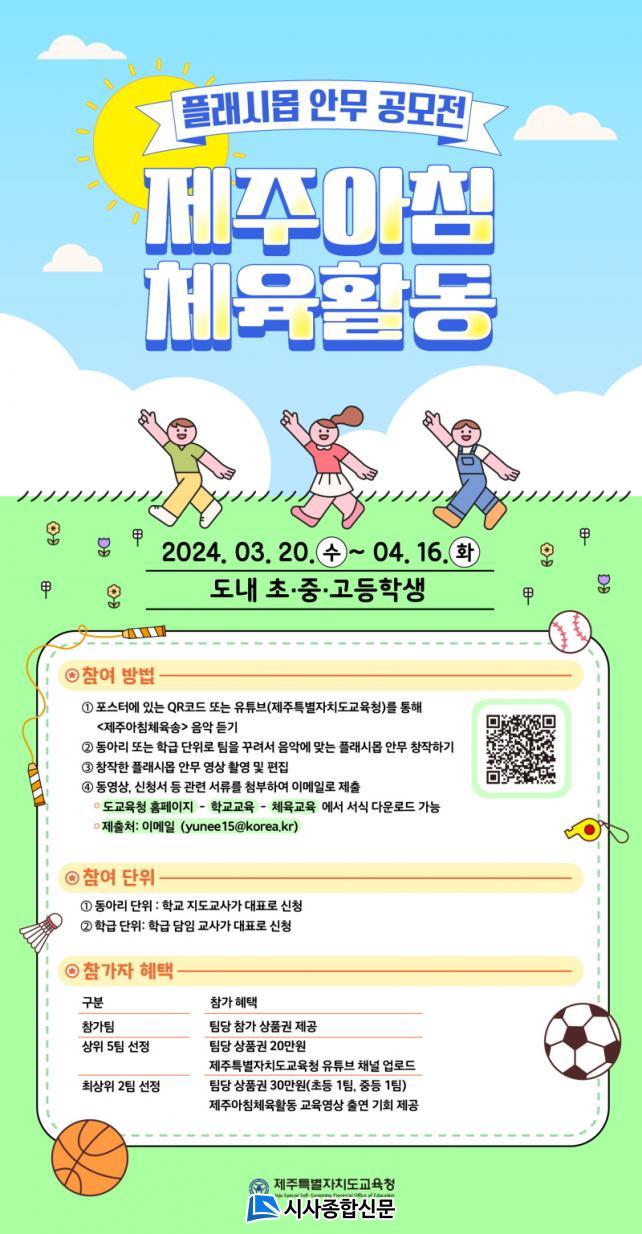| Á¦ÁÖµµ±³À°Ã», ¡®Á¦ÁÖ ¾ÆÄ§ üÀ° Ȱµ¿¡¯Ç÷¡½Ã¸÷ ¾È¹« °ø¸ðÀü ¿î¿µ ¡°¾ÆÀÌµé ¾ÆÄ§À» ±ú¿ì°í ÀμºÀ» Ű¿ì´Â âÀÛ ¾È¹« °ø¸ðÇϼ¼¿ä¡± |