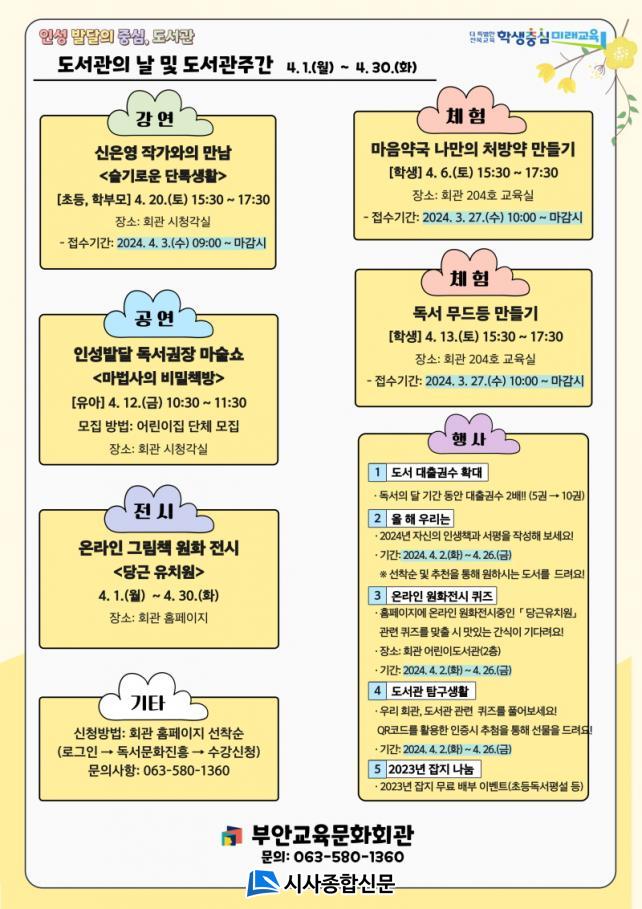 ¡¸½ÅÀº¿µ ÀÛ°¡¿ÍÀÇ ¸¸³²¡¹Àº ÀÛ°¡ÀÇ Ã¥À» Áß½ÉÀ¸·Î Çлý°ú Çкθ𰡠ÇÔ²² Çб³¿¡¼ ÀϾ ¼ö ÀÖ´Â »çÀ̹ö ¿Õµû ½ÇÁ¦ »ç·Ê¸¦ ¾Ë¾Æº¸°í ÇØ°áÇϱâ À§ÇÑ ´Ù¾çÇÑ »ý°¢À» ³ª´²º¸´Â ¼ÒÅëÇü ½Ã°£ÀÌ ÁøÇàµÇ¸ç, ¾î¸°À̵鿡°Ô µµ¼°ü°ú µ¶¼ ½À°üÀ» ±ÇÀåÇϰí Àμº¹ß´ÞÀ» µµ¸ðÇϱâ À§ÇÏ¿© Àμº¹ß´Þ µ¶¼±ÇÀå ¸¶¼ú¼î ¡¸¸¶¹ý»çÀÇ ºñ¹ÐÃ¥¹æ¡¹ °ø¿¬À» ÃßÁøÇÑ´Ù.