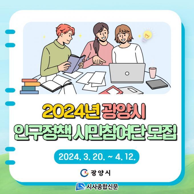 Àα¸Á¤Ã¥¿¡ °ü½É ÀÖ´Â 18¼¼ ÀÌ»ó ±¤¾ç½Ã¹ÎÀº ´©±¸³ª Âü¿©ÇÒ ¼ö ÀÖÀ¸¸ç, ¸ðÁýÀοøÀº 21¸í À̳»ÀÌ´Ù.Âü¿© Èñ¸ÁÀÚ´Â ¿À´Â 4¿ù 12ÀϱîÁö ±¤¾ç½Ãû ´©¸®ÁýÀ» Âü°íÇÏ¿© Á¦Ãâ¼·ù¸¦ ±¸ºñÇØ ±¤¾ç½Ãû û³âÀÏÀÚ¸®°ú·Î ¹æ¹®Çϰųª ÀüÀÚ¿ìÆí(jang130424@korea.kr)À¸·Î Á¦ÃâÇÏ¸é µÈ´Ù.