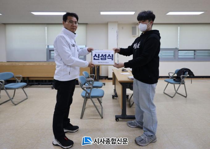 ½Å È帴 À̳¯ ¼±°üÀ§ µî·Ï ÈÄ, ½Å¼º½Ä ¼±°Å»ç¹«¼Ò¿¡¼ ±âÀÚȸ°ßÀ» ¿°í ÀÔÀåÀ» ¹àÇû´Ù.