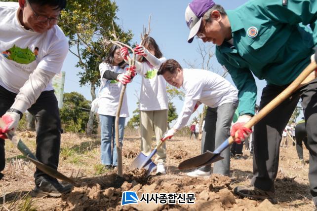 ¿À¿µÈÆ Áö»ç´Â µµÆòÃÊ ¾î¸°À̵é°ú ÇÔ²² ³ª¹«¸¦ ½ÉÀ¸¸é¼ ¡°Áö±¸¿Â³È·Î Áö¼Ó°¡´ÉÇÑ È¯°æ¿¡ ´ëÇÑ °ÆÁ¤ÀÌ Àü ¼¼°èÀûÀΠȵΡ±¶ó¸ç ¡°³ª¹«¸¦ ½ÉÀ¸¸é¼ Áö±¸¿Í ÀÚ¿¬, »ýŰ迡 ´ëÇØ ´Ù½Ã ÇÑ ¹ø »ý°¢ÇÏ´Â °è±â°¡ µÇ±â¸¦ ¹Ù¶õ´Ù¡±°í ÀüÇß´Ù.ÀÌ¾î ¡°±âÈÄÀ§±â¸¦ ±Øº¹Çϰí ź¼ÒÁ߸³À» ½ÇÇöÇϱâ À§ÇØ Á¦ÁÖµµ´Â 600¸¸ ±×·ç ³ª¹«½É±â, ¿¡³ÊÁö ´ëÀüȯ µî Á¤Ã¥À» Â÷Áú¾øÀÌ ÃßÁøÇÒ °Í¡±À̶ó¸ç ¡°¿ì¸®°¡ ´©¸®´Â ÆòÈ¿Í ÀÚ¿¬À» ´ÙÀ½ ¼¼´ë±îÁö Á¦´ë·Î Àü½ÂÇÏ´Â ÀÏ¿¡ ÃÖ¼±À» ´ÙÇϰڴ١±°í °Á¶Çß´Ù.