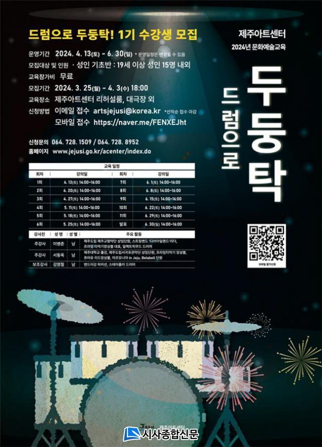 ±³À° ½ÅûÀº 19¼¼ ÀÌ»ó ¼ºÀÎÀÌ¸é ´©±¸³ª °¡´ÉÇϰí, ¼±Âø¼øÀ¸·Î 15¸íÀ» ¸ðÁýÇÑ´Ù. ½Åû ±â°£Àº 3¿ù 25ÀÏ(¿ù)ºÎÅÍ 4¿ù 3ÀÏ(¼ö)±îÁöÀ̸ç, ¸ð¹ÙÀÏ ½Åû¼ ¶Ç´Â À̸ÞÀÏ(artsjejusi@korea.kr)À» ÅëÇØ Á¢¼öÇÏ¸é µÈ´Ù. ±³À°Àº 4¿ù 13ÀϺÎÅÍ 12ÁÖ µ¿¾È ¸ÅÁÖ Åä¿äÀÏ ¿ÀÈÄ 2½Ã¿¡ ÁøÇàµÇ¸ç, ±³À°ºñ´Â ¹«·áÀÌ´Ù.