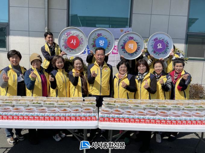 À̹ø Çà»ç´Â À±Ä¡¼º ¡¤ À±Çؼº µµ¾Ï¸éÁö¿ª»çȸº¸ÀåÇùÀÇüÀÇ °øµ¿À§¿øÀåÀ» ºñ·ÔÇÑ 10¿© ¸íÀÇ À§¿øµéÀÌ Á÷Á¢ ¹Ø¹ÝÂùÀ» ÁغñÇØ, µµ¾Ï¸é ³» ¼Ò¿Ü°èÃþ 65°¡±¸¿¡°Ô µÅÁöÁÖ¹°·°, ¿¹«±èÄ¡, Äᳪ¹°¹«Ä§, ´Ü¹«Áö ¹«Ä§, ¹Ù³ª³ª, À½·á¼ö µî ÃÑ 6Á¾·ùÀÇ Á¤¼º½º·¯¿î ¹ÝÂùÀ» Àü´ÞÇß´Ù.