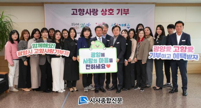 À̹ø »óÈ£±âºÎ´Â ±¤¾ç½Ã ¾Æµ¿º¸À°°ú¿Í ¿©¼ö½Ã ¿©¼º°¡Á·°ú Á÷¿ø 31¸íÀÌ ÀÚ¹ßÀûÀ¸·Î Âü¿©ÇØ ÃÑ 310¸¸ ¿øÀÇ °íÇâ»ç¶û±âºÎ±ÝÀ» ±³Â÷ ±âºÎ¸¦ ÇÏ¸ç °íÇâ»ç¶û±âºÎÁ¦ÀÇ ¼º°øÀû Á¤Âø°ú ¼·ÎÀÇ Áö¿ª¹ßÀüÀ» ÀÀ¿øÇß´Ù.