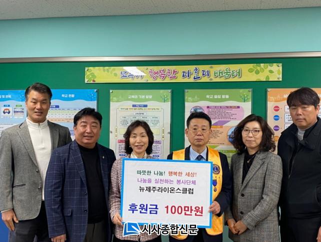 [½Ã»çÁ¾ÇսŹ® = °í¼º¹Î ±âÀÚ] ´ºÁ¦ÁÖ¶óÀ̿½ºÅ¬·´(ȸÀå °íÇöö)Àº Áö³ 26ÀÏ ÀϵµÃʵîÇб³(±³Àå ±èÀºÈñ)¸¦ ¹æ¹®ÇØ ³ó±¸ºÎ ²Þ³ª¹« ¼±¼öµéÀ» °Ý·ÁÇϰí, ÈÄ¿ø±Ý 100¸¸ ¿øÀ» Àü´ÞÇß´Ù.