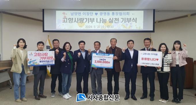 À̳¯ ±¤¾ç½Ã ±¤¿µµ¿ÅëÀåÇùÀÇȸ¿Í °íÈﱺ ³²¾ç¸éÀÌÀå´ÜÀº ÃÑ 210¸¸¿øÀÇ °íÇâ»ç¶û±âºÎ±ÝÀ» ±âºÎÇϸç Áö¿ª ±ÕÇü¹ßÀü°ú »ó»ýÇù·ÂÀ» ´ÙÁüÇÏ´Â µ¥ ¶æÀ» ¸ð¾Ò´Ù.