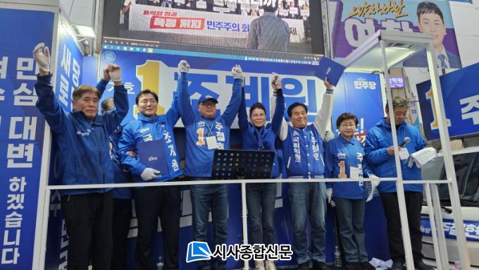 À̾î ÁÖöÇö¡¤Á¶°è¿ø È帴 À¯¼¼¸¦ ÅëÇØ ¡®4¿ù 10ÀÏ À±¼®¿ Á¤±Ç ½ÉÆÇ, ¹ÎÁÖ´ç ÃѼ± ¾Ð½Â¡¯À» ÁöÁöÀÚµé ¾Õ¿¡ °áÀÇÇß´Ù.