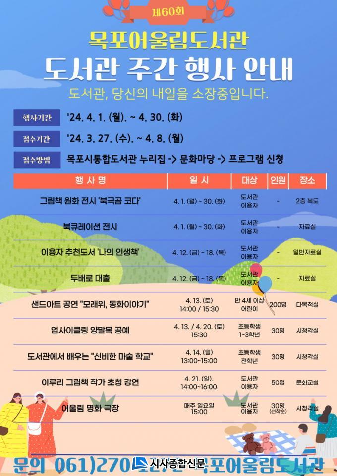 Çà»ç´Â À¯¾Æ¿Í ÃʵîÇлý, ¼ºÀÎÀ» Æ÷ÇÔÇØ ´©±¸³ª Âü¿© °¡´ÉÇÏ°í °ø¿¬ ¹× °Á´ ¸ñÆ÷½Ã ÅëÇÕµµ¼°ü ´©¸®Áý(https://www.mokpolib.or.kr)À» ÅëÇØ ½ÅûÀÌ °¡´ÉÇϸç ÀÚ¼¼ÇÑ ³»¿ëÀº ´©¸®Áý¿¡ °Ô½ÃµÈ °øÁö»çÇ×À» È®ÀÎÇϰųª ¸ñÆ÷¾î¿ï¸²µµ¼°ü(061-270-1272)À¸·Î ¹®ÀÇÇÏ¸é µÈ´Ù.