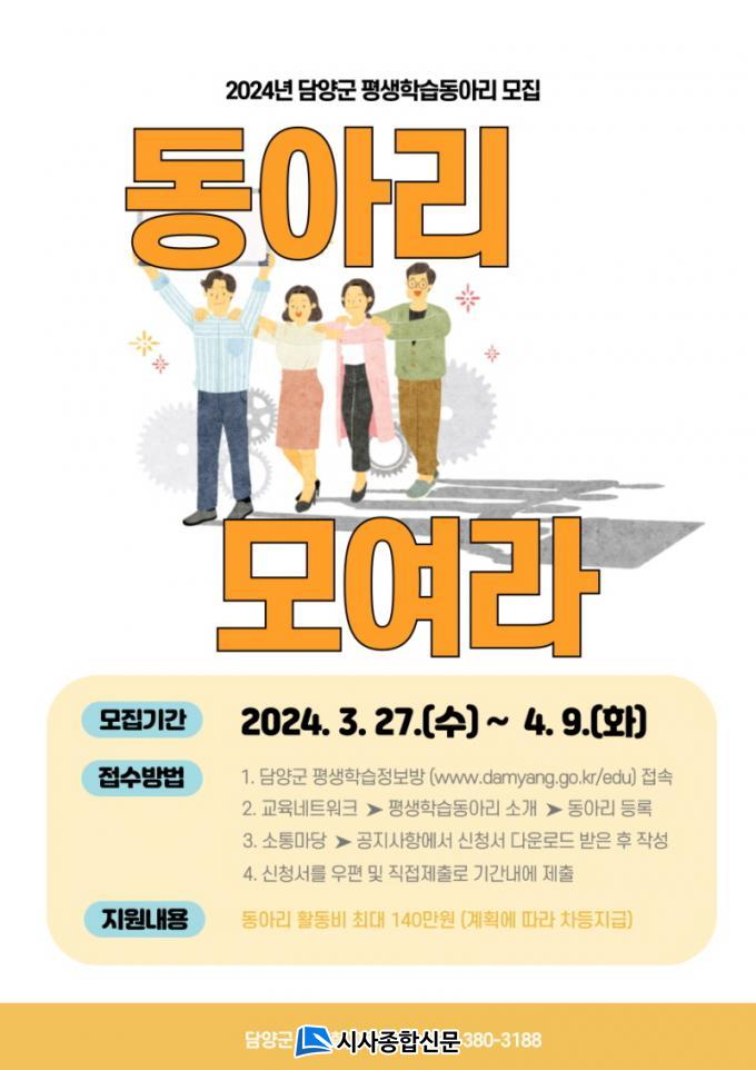 ÀÚ¼¼ÇÑ ³»¿ëÀº ´ã¾ç±ºÃ» ÇàÁ¤°ú(061-380-3188)·Î ¹®ÀÇ ¶Ç´Â ´ã¾ç±º Æò»ýÇнÀÁ¤º¸¸Á(www.damyang.go.kr/edu)°ú ´ã¾ç±º ´©¸®Áý °øÁö»çÇ×À» È®ÀÎÇÏ¸é µÈ´Ù.