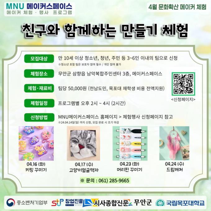 MNU ¸ÞÀÌÄ¿½ºÆäÀ̽º¿¡¼´Â ¹®ÈÈ®»ê ¸ÞÀÌÄ¿ üÇè ÇÁ·Î±×·¥ ¿Ü¿¡µµ ¡®»ýȰ¸ÞÀÌÄ¿ Class ÇÁ·Î±×·¥¡¯À» ÅëÇØ ³×¿Â»çÀÎ, ŸÀÏ ¼±¹Ý°ú Æ®·¹ÀÌ, ¼®°í ¹æÇâÁ¦, ÇâÃÊ, ¹Ì´Ï¾îó, Å׶󸮿ò ¹Ì´ÏÁ¤¿ø, µå¸²Ä³Ã³ ¸¸µé±â µî ´Ù¾çÇÑ ¸ÞÀÌÄ¿ ÁÖÁ¦¸¦ ÁغñÇÏ¿© ¿ÃÇØ 11¿ù±îÁö ¸Å¿ù ¼ö°»ýÀ» ¸ðÁýÇÏ¿© ¿î¿µÇÒ ¿¹Á¤ÀÌ´Ù.