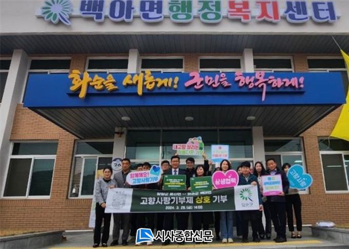 À̹ø Çù¾à½ÄÀ» ÅëÇØ ȼø±º ¹é¾Æ¸é(¸éÀå Á¶¿µ±Õ)°ú ´ã¾ç±º ºÀ»ê¸é(¸éÀå ±¸¹ÌÇü) Á÷¿ø 15¸íÀÌ °¢ ÁöÀÚü¿¡ 10¸¸ ¿ø¾¿ ÃÑ 300¸¸ ¿øÀ» ±âºÎÇϸç Áö¿ª¹ßÀü¿¡ µ¿ÂüÇß´Ù.
