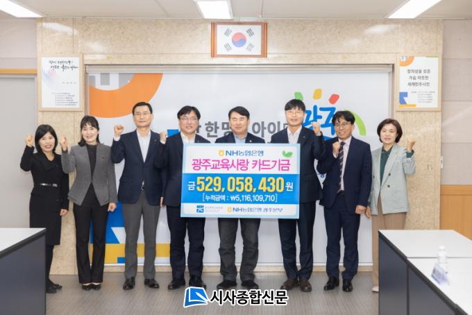 [½Ã»çÁ¾ÇսŹ® = ¿À½ÂÅà ±âÀÚ] ±¤Áֽñ³À°Ã»ÀÌ 1ÀÏ NH³óÇùÀºÇàÀ¸·ÎºÎÅÍ ¡®±¤ÁÖ±³À°»ç¶ûÄ«µå¡¯»ç¿ëÀ¸·Î ¹ß»ýÇÑ Àû¸³±Ý 5¾ï2õ905¸¸ ¿øÀ» Àü´Þ¹Þ¾Ò´Ù. À̹ø Àü´ÞµÈ Àû¸³±ÝÀº ½Ã±³À°Ã» ¿¹»ê¿¡ Æ÷ÇԵоÕÀ¸·Î ±¤ÁÖ ÇлýµéÀ» À§ÇÑ ´Ù¾çÇÑ »ç¾÷¿¡ Ȱ¿ëµÉ ¿¹Á¤ÀÌ´Ù.