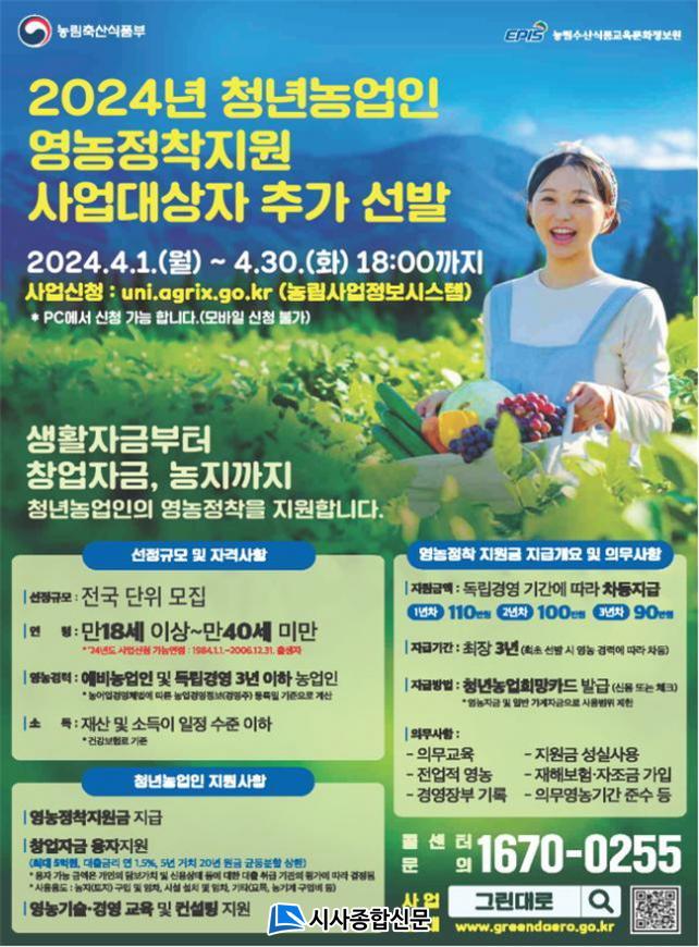 ¼±¹ßµÈ û³â³ó¾÷ÀÎÀº ¡ãÃÖ´ë 3³â°£ ¿ù 90¸¸ ~ 110¸¸ ¿øÀÇ ¿µ³óÁ¤ÂøÁö¿ø±Ý, ¡ãÃÖ´ë 5¾ï ¿øÀÇ Á¤Ã¥ÀÚ±Ý(±Ý¸® 1.5%, 5³â °ÅÄ¡ 20³â ºÐÇÒ »óȯ), ¡ã¿µ³ó±â¼ú ¹× ±³À° ÄÁ¼³ÆÃ µîÀ» Áö¿ø¹ÞÀ» ¼ö ÀÖ´Ù.