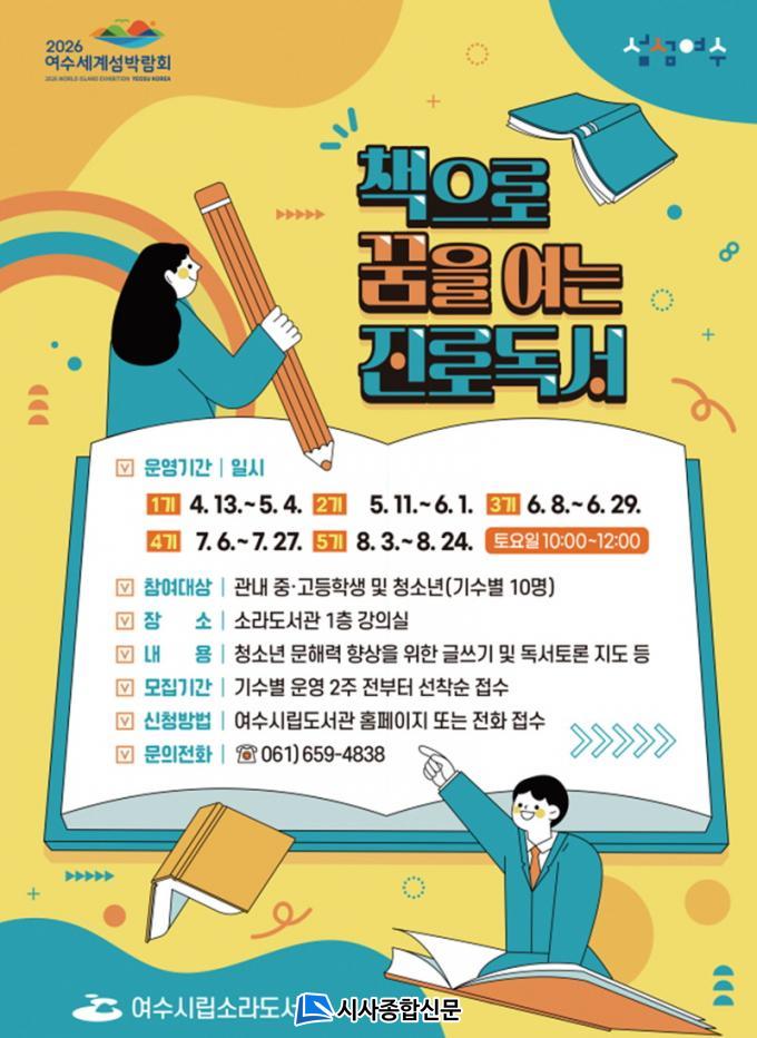 | ¿©¼ö½Ã, ¡®Ã¥À¸·Î ²ÞÀ» ¿©´Â Áø·Îµ¶¼¡¯ Âü¿©ÀÚ ¸ðÁý û¼Ò³â ¹®ÇØ·Â Çâ»ó À§ÇÑ ±Û¾²±â․µ¶¼Åä·Ð Áöµµ¡¦±â¼öº° ¿î¿µ 2ÁÖ ÀüºÎÅÍ ¼±Âø¼ø Á¢¼ö |