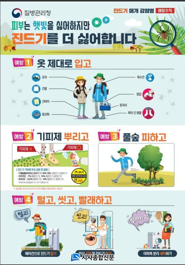 ±º»ê½Ãº¸°Ç¼Ò´Â ³óÀÛ¾÷ ¹× ¾ß¿ÜȰµ¿ÀÌ ¸¹¾ÆÁö´Â º½Ã¶¿¡ Áøµå±â ¸Å°³ °¨¿°º´ ¿¹¹æ¼öÄ¢À» ÁؼöÇØ ÁÙ °ÍÀ» ´çºÎÇß´Ù.´ëÇ¥ÀûÀÎ Áøµå±â ¸Å°³ °¨¿°º´Àº ¼¼±ÕÀ̳ª ¹ÙÀÌ·¯½º¿¡ °¨¿°µÈ Áøµå±â¿¡ ¹°·Á¹ß»ýÇÏ´Â °¨¿°º´À¸·Î, ÂêÁî°¡¹«½ÃÁõ, ÁßÁõ¿¼ºÇ÷¼ÒÆÇ °¨¼ÒÁõ(SFTS)ÀÌ ´ëÇ¥ÀûÀÌ´Ù.