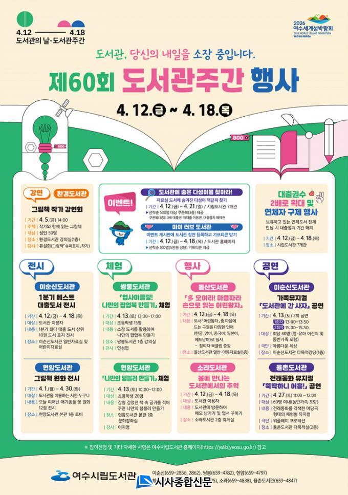 À̹ø Çà»ç´Â ¡®µµ¼°ü, ´ç½ÅÀÇ ³»ÀÏÀ» ¼ÒÀå ÁßÀÔ´Ï´Ù¡¯¶ó´Â ÁÖÁ¦·Î ¿©¼ö½Ã¸³µµ¼°ü 7°³°ü(À̼ø½Å¡¤½ÖºÀ¡¤Çö¾Ï¡¤È¯°æ¡¤µ¹»ê¡¤¼Ò¶ó¡¤À²ÃÌ)¿¡¼ ´Ùä·Î¿î µ¶¼¡¤¹®È Çà»ç°¡ ¸¶·ÃµÈ´Ù.