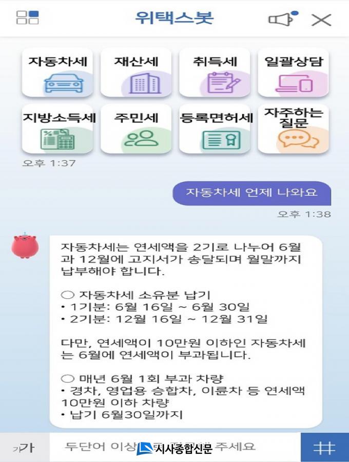 ƯÈ÷ ¡®À§Åýºº¿¡¯Àº Áö¹æ¼¼ Áß¿¡¼ ¹®ÀÇ ºóµµ°¡ ³ôÀº ÀÚµ¿Â÷¼¼, Àç»ê¼¼, Ãëµæ¼¼ µî 6°³ ¼¼¸ñ Áß ¿øÇÏ´Â Ç׸ñÀ» ¼±ÅÃÇϰųª Á÷Á¢ Áú¹®ÇÔÀ¸·Î½á ¿øÇÏ´Â Á¤º¸¸¦ ¾òÀ» ¼ö ÀÖ¾î, ³³¼¼ÀÚ´Â °³Àκ° ¸ÂÃãÇü ¾È³»¸¦ ÅëÇØ ÇýÅà Á¤º¸¸¦ ¹Þ¾Æº¼ ¼ö ÀÖ´Ù.
