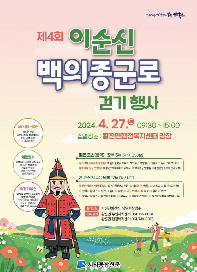 ¿ÃÇØ·Î 4ȸ°¸¦ ¸ÂÀÌÇÏ´Â À̹ø Çà»ç´Â 427³â Àü À̼ø½Å À屺ÀÌ ¼øÃµ ±¸°£À» ¹éÀÇÁ¾±ºÇÏ¿´´ø ½Ã±â¿¡ ¸ÂÃç ¿À´Â 27ÀÏ¿¡ °³ÃֵȴÙ. ªÀº ÄÚ½º(¿Õº¹ 5km)¿Í ±ä ÄÚ½º(¿Õº¹ 12km)¸¦ ¼±ÅÃÇØ °ÉÀ» ¼ö ÀÖ°í Çà»çÀå¿¡´Â ±âÁ¸º¸´Ù ´õ¿í dzºÎÇØÁø °ø¿¬, üÇèÇà»ç ÇÁ·Î±×·¥°ú ¸Ô°Å¸®°¡ ÁغñµÉ ¿¹Á¤ÀÌ´Ù.