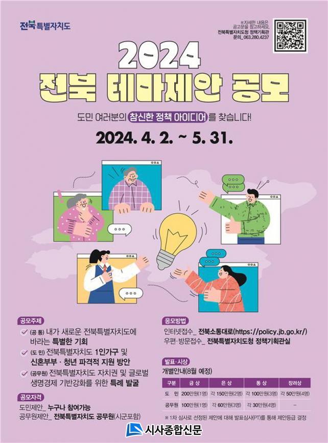 ÀüºÏƯº°ÀÚÄ¡µµ´Â µµ¹Î°ú °ø¹«¿øÀÇ Âü½ÅÇÑ ¾ÆÀ̵ð¾î¸¦ Á¤Ã¥¿¡ ¹Ý¿µÇϰíÀÚ 5¿ù 31ÀϱîÁö Å׸¶Á¦¾È °ø¸ð¸¦ ÃßÁø ÁßÀ̶ó°í ¹àÇû´Ù.¿ÃÇØ Å׸¶Á¦¾È °ø¸ð´Â µµ¹Î‧°ø¹«¿ø °øÅë, µµ¹Î ´ë»ó, °ø¹«¿ø ´ë»ó µî ´ë»óº° °¢°¢ÀÇ ÁÖÁ¦·Î ÁøÇàµÈ´Ù. µµ´Â °ø¸ðÁÖÁ¦ ¼±Á¤À» À§ÇØ Áö³ 3¿ù ÀüºÏ¼ÒÅë´ë·Î¸¦ ÅëÇØ ÁÖÁ¦ ¼±È£µµ Á¶»ç¸¦ ½Ç½ÃÇß´Ù.