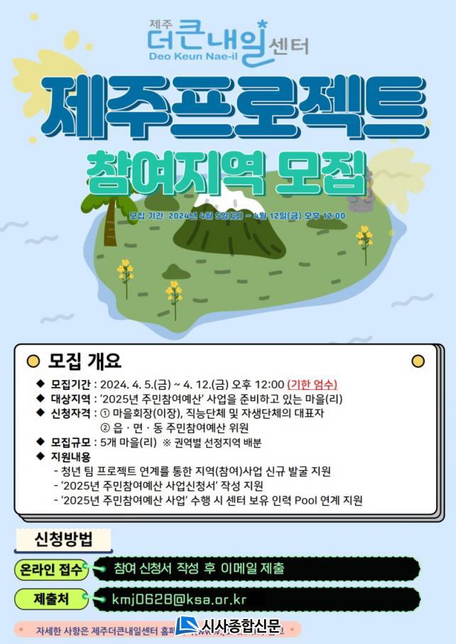 ¼±¹ßÁö¿ªÀº 2024³â 4¿ù 17ÀϺÎÅÍ ¡®Á¦ÁÖÇÁ·ÎÁ§Æ®¡¯¿¡ º»°ÝÀûÀ¸·Î Âü¿©ÇÏ°Ô µÇ°í, ޳ª´ÂÀÎÀç 9±â 15°³ ÆÀÀÌ Áö¿ª ´ä»ç ¹× Á¶»ç, Áö¿ªÁֹΠ¹× ÀÚ»ý´Üü¿ÍÀÇ Àǰ߼ö·ÅÀ» À§ÇÑ ¼³¸íȸ µîÀ» ÅëÇØ Áֹεé°ú ¼ÒÅëÇÏ¸ç °¢ Áö¿ª¿¡ ÇÊ¿äÇÑ »ç¾÷À» ¹ß±¼Çϰí Á¦¾ÈÇÒ ¿¹Á¤ÀÌ´Ù.