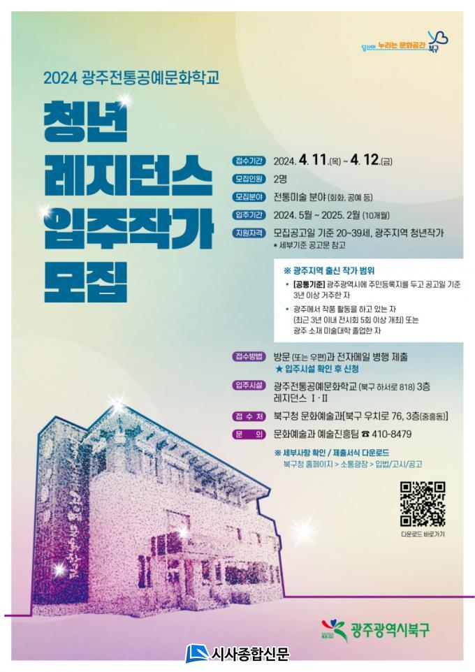 ¹®ÀÎ ºÏ±¸Ã»ÀåÀº ¡°Áö¿ª °ø¿¹¹®È È®»êÀÇ °ÅÁ¡ °ø°£ÀÎ ±¤ÁÖÀüÅë°ø¿¹¹®ÈÇб³ ÀÔÁÖÀÛ°¡ ¸ðÁý¿¡ Áö¿ª û³âµéÀÇ ¸¹Àº °ü½É°ú Âü¿© ¹Ù¶õ´Ù¡±¸ç ¡°¾ÕÀ¸·Îµµ Áö¿ª ¿¹¼úÀεéÀÌ Ã¢ÀÇÀûÀÎ ÀÛǰ Ȱµ¿À» ÀÚÀ¯·Ó°Ô ÆîÄ¥ ¼ö ÀÖµµ·Ï Áö¿øÀ» ¾Æ³¢Áö ¾Ê°Ú´Ù¡±°í ¸»Çß´Ù.