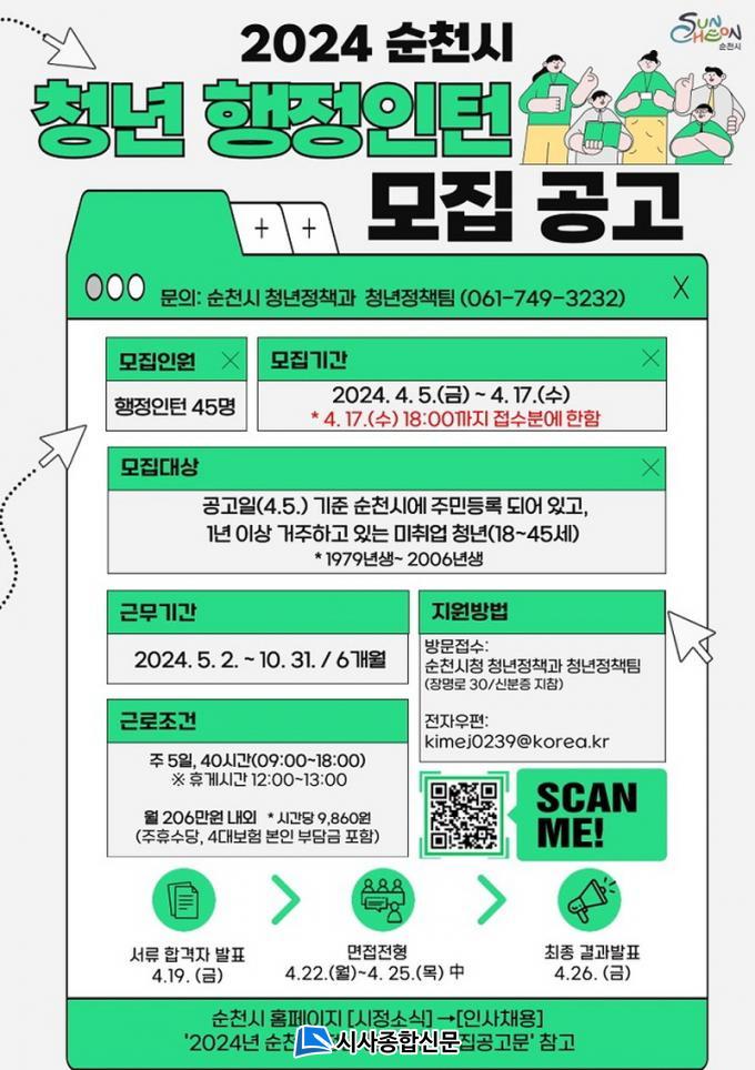 ¼±¹ßÀοøÀº ÃÑ 45¸íÀ¸·Î, 5¿ùºÎÅÍ 10¿ù±îÁö 6°³¿ù µ¿¾È ¼øÃµ½Ã ½Ç°ú¼Ò, À¾¸éµ¿ ÇàÁ¤º¹Áö¼¾ÅÍ¿¡¼ ±Ù¹«Çϸç ÇàÁ¤ ½Ç¹« °æÇèÀ» ½×°í Ãë¾÷ °æÀï·ÂÀ» °®Ãâ ¼ö ÀÖ´Ù.