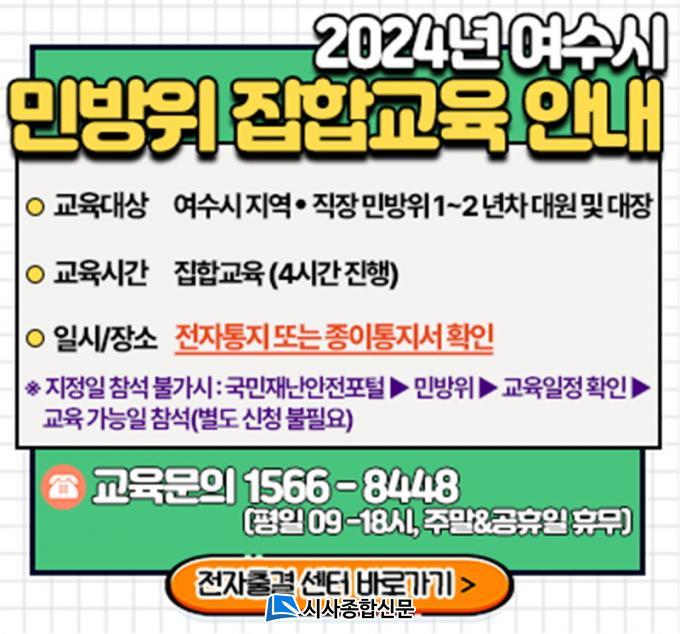 ¿ÃÇØ ¹Î¹æÀ§ ÁýÇÕ±³À°Àº ¿À´Â 15ÀϺÎÅÍ 6¿ù 5ÀϱîÁö, ¹Î¹æÀ§»ó¼³±³À°Àå(ÆòÀÏ ¿ÀÈÄ 1~5½Ã±îÁö)°ú ÇØ¾ç°æÂû±³À°¿ø(¿ÀÈÄ 2~6½Ã) 2°÷¿¡¼ ¿î¿µµÈ´Ù.