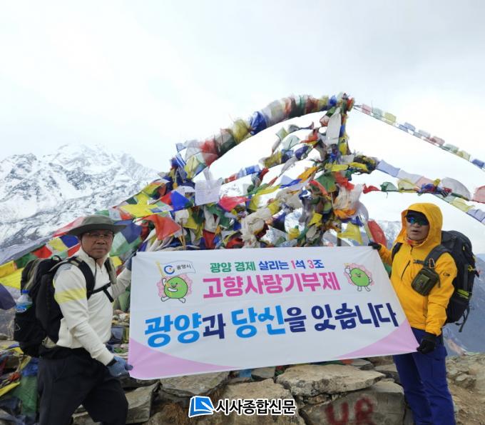 ÇãÇüä À§¿øÀåÀº Áö³ 5ÀÏ ³×ÆÈ È÷¸»¶ó¾ß ¶ûÅÁ °Áø¸®(4773m) Á¤»ó¿¡ ¿Ã¶ó Áö³ÇغÎÅÍ ½ÃÇà ÁßÀÎ °íÇâ»ç¶û±âºÎÁ¦ÀÇ È°¼ºÈ¿Í ¼º°øÀûÀÎ Á¤ÂøÀ» ¿°¿øÇÏ¸ç ¡°±¤¾ç °æÁ¦ »ì¸®´Â 1¼® 3Á¶ °íÇâ»ç¶û±âºÎÁ¦ ±¤¾ç°ú ´ç½ÅÀ» ÀÕ½À´Ï´Ù¡±¶ó´Â ¹®±¸°¡ ´ã±ä Çö¼ö¸·À» ÆîÄ¡¸ç È«º¸ ÆÛÆ÷¸Õ½º¸¦ Çß´Ù.