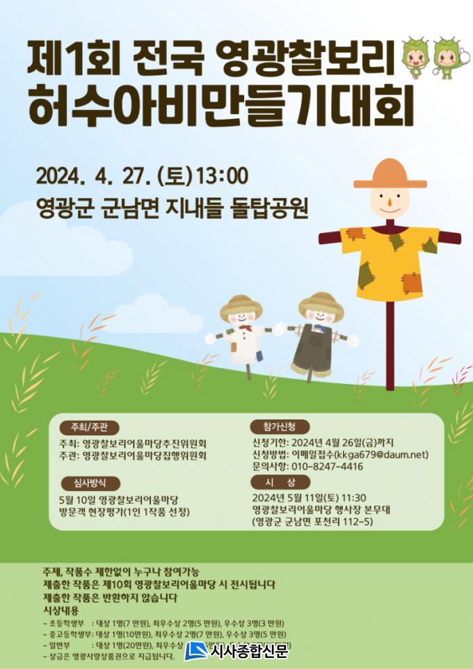 Á¦1ȸ Àü±¹ ¿µ±¤Âûº¸¸® Çã¼ö¾Æºñ ¸¸µé±â ´ëȸ´Â 4¿ù 27ÀÏ¿¡ ±º³²¸é Áö³»µé µ¹Å¾°ø¿ø¿¡¼ °³ÃֵǸç, ´©±¸³ª ÀÚÀ¯ÁÖÁ¦·Î 4¿ù 26ÀϱîÁö Âü°¡ ½ÅûÀÌ °¡´ÉÇϸç, 3°³ ºÎ¹®(ÃʵîÇлý, Áß°íµîÇлý, ÀϹÝ)À¸·Î ³ª´©¾î Á¦10ȸ ¿µ±¤Âûº¸¸® ¾î¿ï¸¶´ç½Ã ¹æ¹®°´ ÇöÀåÆò°¡¸¦ ÅëÇØ ¼ö»óÀÛ 18ÀÛÀ» ¼±Á¤ÇÒ ¿¹Á¤ÀÌ´Ù.