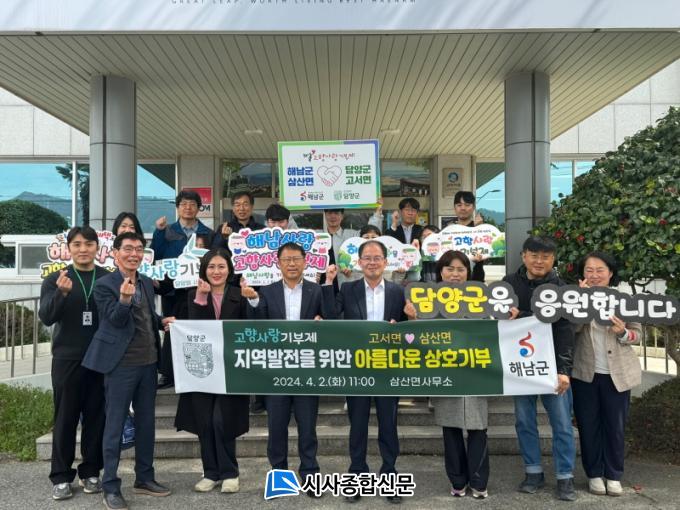 À̳¯ °í¼¸é°ú ÇØ³²±º »ï»ê¸é Á÷¿ø 30¸íÀº ÇÔ²² °íÇâ»ç¶û±âºÎÁ¦ÀÇ È®»êÀ» µµ¸ðÇÏ°í ¾ç Áö¿ª °£ÀÇ »ó»ý¹ßÀüÀ» ÀÀ¿øÇϱâ À§ÇØ »óÈ£ ±³Â÷ ±âºÎ¿¡ µ¿ÂüÇß´Ù.