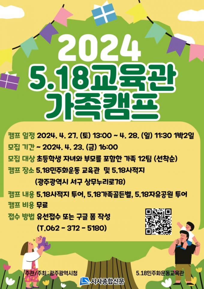 | ±¤ÁÖ5¡¤18±³À°°ü, Ãʵî ÀÚ³à °¡Á· ¡®5¡¤18Ä·ÇÁ¡¯ ¿î¿µ 23ÀϱîÁö ¼±Âø¼ø 12°¡Á· ¸ðÁý¡¦³î°í Áñ±â¸ç 5¡¤18 ¹è¿ö |