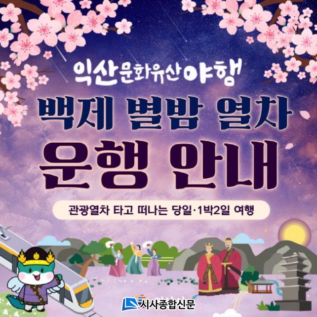 ¿ë»ê¿ª¿¡¼ Ãâ¹ßÇØ °í½º¶ô, ¾Æ°¡Æä Á¤¿ø µî ÀÍ»êÀÇ ¾Æ¸§´Ù¿î Á¤¿ø °ü±¤Áö¸¦ µÑ·¯º¸°í ÀÍ»ê ¹®ÈÀ¯»ê ¾ßÇàÀÌ °³ÃֵǴ ¿Õ±Ã¸®À¯Àû ÀÏ¿ø¿¡¼ ¹éÁ¦ ¿Õ±Ã ¿¬Èñ¸¦ Áñ±æ ¼ö ÀÖ´Ù. ¾Æ¿ï·¯ ´ÙÀ½ ´Þ 3ÀϺÎÅÍ 6ÀϱîÁö 4Àϰ£ °³ÃֵǴ ÀÍ»ê ¼µ¿ÃàÁ¦¿Í ¿¬°èÇØ ´ÙÀ½ ´Þ 5ÀÏ ´çÀÏ ÄÚ½º·Î ¿î¿µÇÏ´Â 'õ³â»ç¶û ¿Â÷ ½ÃÁð2' ¿©Çà ½ÅûÀ» ¹Þ°í ÀÖ´Ù. ¿¹¾àÀº È«ÀÍ¿©Çà»ç ´©¸®Áý(www.ktxtour.co.kr/)À» ÅëÇØ °¡´ÉÇÏ´Ù.
