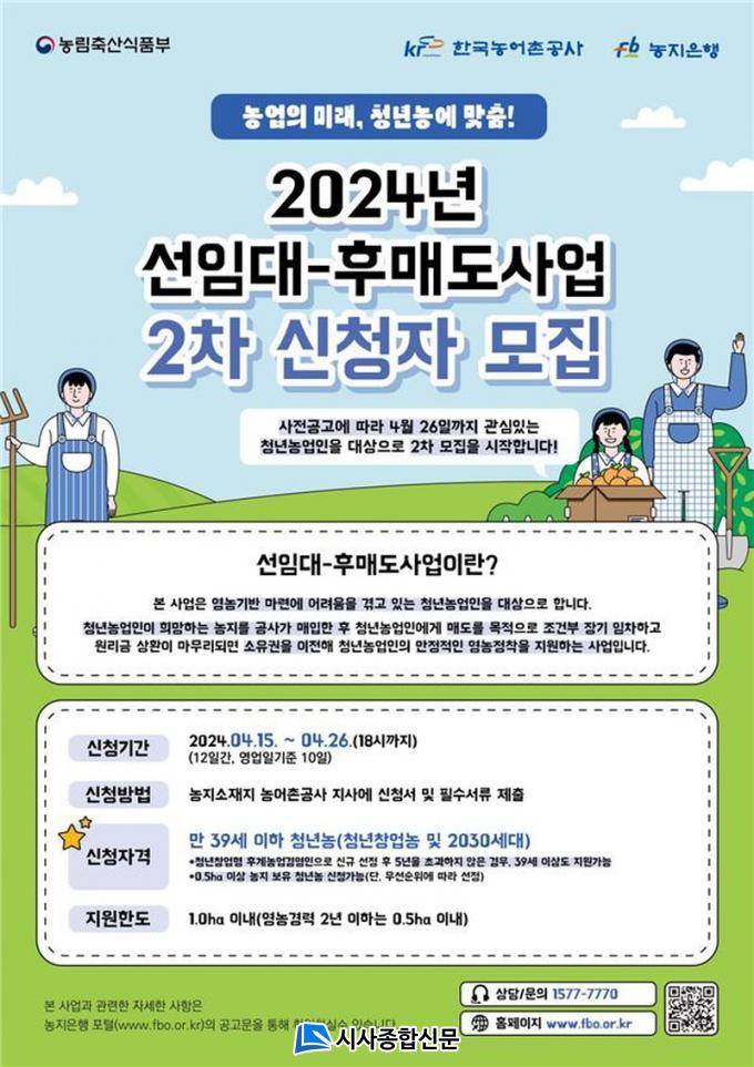 ¡®¼±ÀÓ´ë-Èĸŵµ»ç¾÷¡¯Àº û³â ³ó¾÷ÀÎÀÌ Èñ¸ÁÇÏ´Â ³óÁö¸¦ °ø»ç°¡ ¸ÅÀÔÇÑ ÈÄ Ã»³â ³ó¾÷ÀÎÀÌ ¸Åµµ¸¦ ¸ñÀûÀ¸·Î Á¶°ÇºÎ Àå±â ÀÓÂ÷(ÃÖÀå 30³â)ÇÏ°í ¿ø¸®±Ý »óȯÀÌ ¸¶¹«¸®µÇ¸é ¼ÒÀ¯±ÇÀ» ÀÌÀüÇØ û³â ³ó¾÷ÀÎÀÇ ¾ÈÁ¤ÀûÀÎ ¿µ³ó Á¤ÂøÀ» µ½´Â »ç¾÷ÀÌ´Ù.