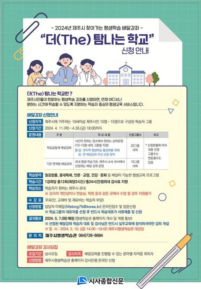 ã¾Æ°¡´Â ¹è´Þ °Á´ ½Ã¹ÎÀÌ ¿øÇÏ´Â ½Ã°£°ú Àå¼Ò¿¡ °Á¸¦ Á÷Á¢ ¹è´ÞÇØ ÁÖ´Â ¸ÂÃãÇü ±³À° ¼ºñ½ºÀÌ´Ù. ¿ÃÇØ´Â ±âÁ¸ÀÇ ¹è´Þ °Á¸¦ ¡®´õ ޳ª´Â Çб³¡¯·Î »õ·Ó°Ô ´ÜÀåÇϰí, ÇнÀÀÚ ±×·ìÀ» ±âÁ¸ 25°³ ±×·ì¿¡¼ 30°³ ±×·ìÀ¸·Î È®´ëÇØ ¼±Á¤ÇÑ´Ù. ÇнÀÀÚ ±×·ì ¸ðÁý ±â°£Àº 4¿ù 11ÀϺÎÅÍ 4¿ù 26ÀϱîÁöÀ̸ç, 19¼¼ ÀÌ»óÀÇ Á¦ÁֽùΠ10¸í¿¡¼ 15¸íÀ¸·Î ±¸¼ºµÈ ÇнÀ±×·ìÀÇ ´ëÇ¥ÀÚ°¡ ´ã´çÀÚ À̸ÞÀÏÀ» ÅëÇØ ¿Â¶óÀÎ Á¢¼ö ¶Ç´Â ¹æ¹® ½ÅûÀ» ÇÏ¸é µÈ´Ù.