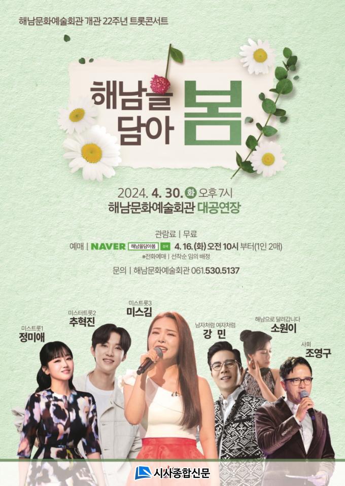 ¡®Çس²À» ´ã¾Æ º½¡¯Àº ¹Ì½ºÆ®·Ô3 °æ¿¬ ÇÁ·Î±×·¥¿¡¼ 4À§¿¡ ÀÔ»óÇÑ ÇØ³²Ãâ½Å °¡¼ö ¹Ì½º±è°ú Æ®·Ô µð¹Ù Á¤¹Ì¾Ö, ¹Ì½ºÅÍ Ãß ÃßÇõÁø, °¹Î, ¼Ò¿øÀÌ µîÀÌ Ãâ¿¬ÇØ ±º¹Îµé°ú ÇÔ²²ÇÏ´Â º½¸ÂÀÌ ÄܼƮ¸¦ ¸¶·ÃÇß´Ù.