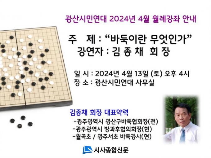 [½Ã»çÁ¾ÇսŹ® = ±è¿¬Èñ ±âÀÚ] ±¤»ê½Ã¹Î¿¬´ë(¼ö¼®´ëÇ¥ : ÀÓÇÑÇÊ)´Â 2024³â 4¿ù ¿ù·Ê°Á¸¦ 13ÀÏ¿¡ ±¤»ê½Ã¹Î¿¬´ë »ç¹«½Ç¿¡¼ ¡°¹ÙµÏÀ̶õ ¹«¾ùÀΰ¡¡±¶ó´Â ÁÖÁ¦·Î ±èÁ¾Ã¤ ±¤»ê±¸¹ÙµÏÇùȸÀåÀÇ °¿¬È¸·Î °³ÃÖÇß´Ù.