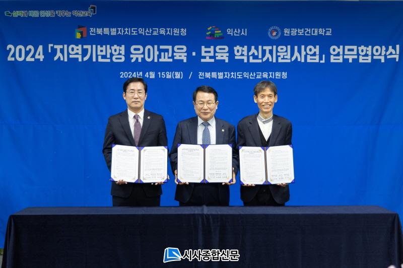 ÀÍ»ê½Ã´Â 15ÀÏ Àͻ걳À°Áö¿øÃ»¿¡¼ 'Áö¿ª±â¹ÝÇü À¯¾Æ±³À°¡¤º¸À° Çõ½ÅÁö¿ø»ç¾÷' ÃßÁøÀ» À§ÇØ Àͻ걳À°Áö¿øÃ»(±³À°Àå Á¤¼ºÈ¯), ¿ø±¤º¸°Ç´ëÇб³(ÃÑÀå ¹éÁØÈì)¿Í ¾÷¹«Çù¾àÀ» ü°áÇß´Ù.