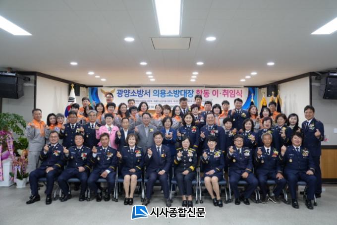 À̳¯ Çà»ç´Â Á¤ÀÎÈ ±¤¾ç½ÃÀå, ¼¿µ¹è ±¤¾ç½ÃÀÇȸ ÀÇÀå, µµÀÇ¿ø µî Áö¿ªÀλçµé°ú Áö¿ª ÀÇ¿ë¼Ò¹æ´ëÀå ¹× ÀÇ¿ë¼Ò¹æ´ë¿ø 100¿© ¸íÀÌ Âü¼®ÇÑ °¡¿îµ¥ ÀÌÀÓÇÏ´Â À̼º³²(±¤¾çÀ¾ ¿©¼ºÀÇ¿ë¼Ò¹æ´ë), ¼ºÅ¹®(¿Á·æ¸é ³²¼ºÀÇ¿ë¼Ò¹æ´ë), ¾È¼±È£(¿Á°î¸é ³²¼ºÀÇ¿ë¼Ò¹æ´ë), ¹Úµ¿±â(Àü¹®ÀÇ¿ë¼Ò¹æ´ë)´ëÀåÀÇ ³ë°í¸¦ Ä¡ÇÏÇϰí À̾î ÃëÀÓÇϴ ȲÀºÇÏ(±¤¾çÀ¾ ¿©¼ºÀÇ¿ë¼Ò¹æ´ë), È«Á¾·¡(¿Á·æ¸é ³²¼ºÀÇ¿ë¼Ò¹æ´ë), ¾ç±¤¿ì(¿Á°î¸é ³²¼ºÀÇ¿ë¼Ò¹æ»õ), ÀÌ¿õ±â(Àü¹®ÀÇ¿ë¼Ò¹æ´ë)´ëÀåÀ» ÃàÇÏÇϱâ À§ÇØ ¸¶·ÃµÆ´Ù.